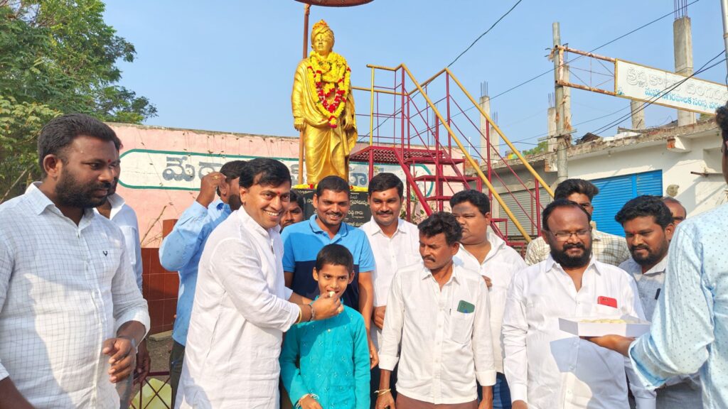 వారి స్ఫూర్తితోనే నేతాజీ సుభాష్ చంద్రబోస్, బాలగంగాధర్ తిలక్, చంద్రశేఖర్ ఆజాద్, భగత్ సింగ్ లాంటి మహనీయులు స్వాతంత్ర్య పోరాటంలో పాల్గొన్నారని,మన దేశంలో ఆగస్టు 15, జనవరి 26 లను ఎలా జరుపుకుంటామో జనవరి 12 న స్వామి వివేకానంద జయంతి సందర్భంగా జాతీయ యువజానోత్సవం కూడా అంతే ఘనంగా, వైభవంగా జరుపుకుంటామన్నారు..భారత వేద ఉపనిషత్తుల సారాన్ని, ఇక్కడి ఆధ్యాత్మిక వైభవాన్ని, సాంస్కృతిక వారసత్వ సంపదను ప్రపంచానికి చాటి చెప్పి భారత దేశం ఔన్నత్యాన్ని ప్రపంచస్థాయిలో ఇనుమడింపజేసారని,మన దేశాన్ని పాములు ఆడించే వాళ్ళు నివసించే దేశమని, పేదలు, బిచ్చగాళ్ల ఉంటారని, మూఢనమ్మకాలకు నెలవని ప్రచారం చేస్తున్న క్రమంలో మన దేశం విశ్వగురువని, ప్రపంచానికి జ్ఞాన భిక్ష పెట్టిన దేశం, నాగరికత తెలిసిన దేశం, రత్నాలు రాశులుగా పోసి దేశమని సిరిసంపదలు నెలవని ప్రపంచం కాళ్ళు తెరిపించారన్నారు…అలాంటి మహా పురుషులు యుగానికొక్కలు, శతాబ్దాలకు ఒక్కరూ పుడతారు. 162 ఏళ్ల క్రితం స్వామి వివేకానంద పుట్టారు. కాబట్టి అలాంటి మహనీయుడి జయంతి, జాతీయ యువజనోత్సవం సందర్భంగా ఆ మహనీయున్ని స్మరిస్తూ శుభాకాంక్షలు తెలిపారు.ఈ కార్యక్రమంలో వంగపహాడ్ లో బి ఆర్ ఎస్ గ్రామ అధ్యక్షులు చింతం శ్రీనివాస్, దేవయ్య, పురుషోత్తం యాదవ్, గండు రాజయ్య, దోమ ప్రకాష్, తెట్టే రవి, అశోక్, హరీష్ గౌడ్, రజినీకాంత్, కళ్యాణ్ లు ఉన్నారు.పాపయ్య పేట్ చమాన్ దగ్గర మాజీ మేయర్ గుండా ప్రకాష్, ఉత్సవ నిర్వాహకులు ఏలేషా, వినోద్ ఆనంద్, శివాజీ, టిఆర్ఎస్ పార్టీ డివిజన్ అధ్యక్షులు సద్దంత్, సీనియర్ నాయకులు రవి , పురుషోత్తం యాదవ్ ఉన్నారు.
